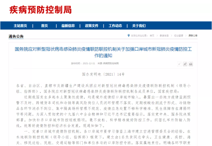 通知要求,从完善口岸城市疫情防控机制、健全疫情监测预警体系、落实边境管控措施等9个方面着力,加快补齐口岸城市防控短板弱项,毫不放松、科学精准做好防控工作,织密扎牢外防输入防线。