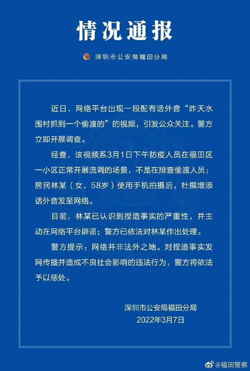 3月7日,深圳市公安局福田分局发布《情况通报》,全文如下: