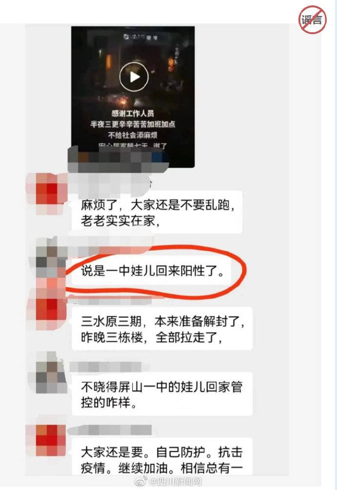 真相:经宜宾公安机关核实,谣言中提到的一中学生于9月17日下午6点左右才回家。网传的阳性是叙州区赵场街道原香岭小区做混采时发现的,与一中的学生无关,网传为不实信息。