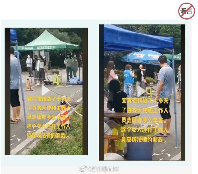谣言三:黑衣女子脚踹防疫工作人员,个别网友将视频与宜宾抗击疫情联系在一起