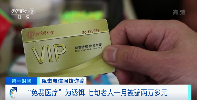 74岁王女士有老年慢性病,能得到国家级专家的免费医疗让她非常高兴。对方称,免费医疗名额有限,要交会费和保证金成为贵宾会员才能享受此项待遇。于是,王女士按要求向对方转款1080元,两天后,她收到一张显示为北京同仁堂的贵宾卡。