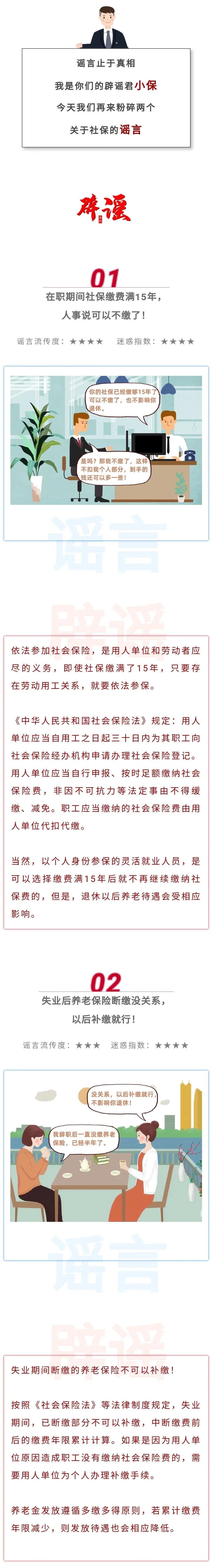 “社保缴费满15年,人事说可以不缴了!”、“辞职后养老保险断缴没关系,以后补缴就行!”别被这些谣言忽悠了