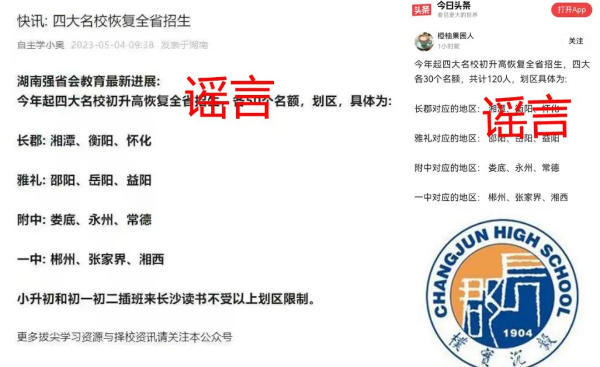 湖南省教育厅郑重声明:此消息为不实消息。我省自2021年全面规范普通高中招生,禁止跨区域招生,并对违规招生行为进行严肃查处。请大家不信谣不传谣。