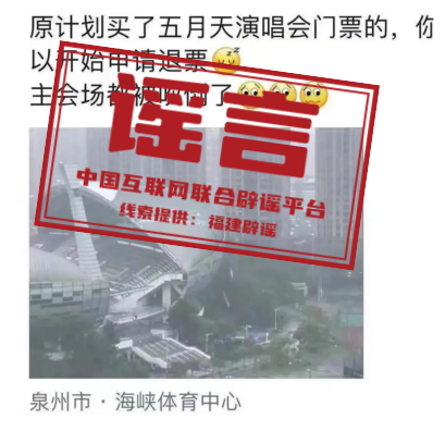 谣言三:泉州海峡体育中心被吹倒?