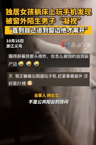 10月16日,浙江金华一网友发视频称自己独居,晚上在出租屋发现窗户上,发现一男子趴窗偷窥。