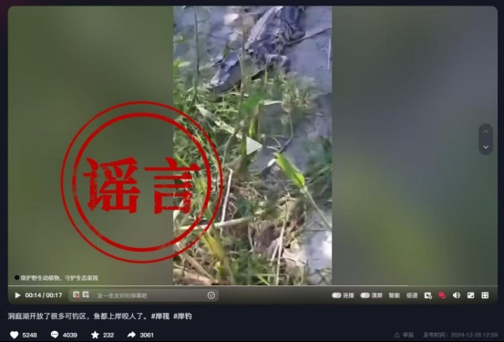 近日,(湖南)岳阳网信部门巡查发现,一则“洞庭湖可钓区发现鳄鱼”的短视频在网络上传播。视频发布后引发大量网民讨论,造成不良影响。