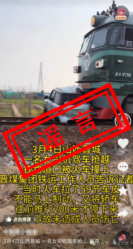 经调查核实,该视频画面出现的火车、工作人员皆非晋能控股装备制造集团(原晋煤集团)铁路运输分公司所属。该时段,该公司煤炭外运安全生产情况一切正常,未发生任何安全事件,相关视频纯属谣言。望广大网民不信谣、不传谣。
