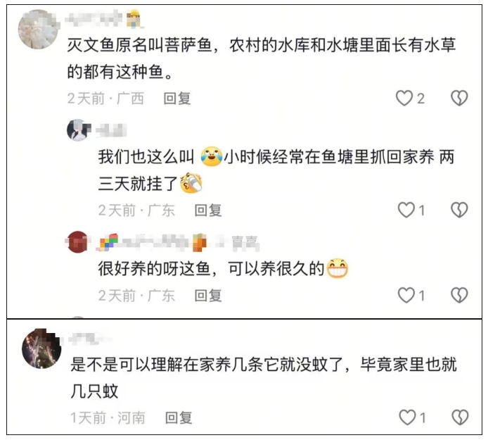 不过他也提醒:“有一种鱼叫‘食蚊鱼’,跟我们投放的鱼不是同一个物种,坚决不能投放在水体中。”