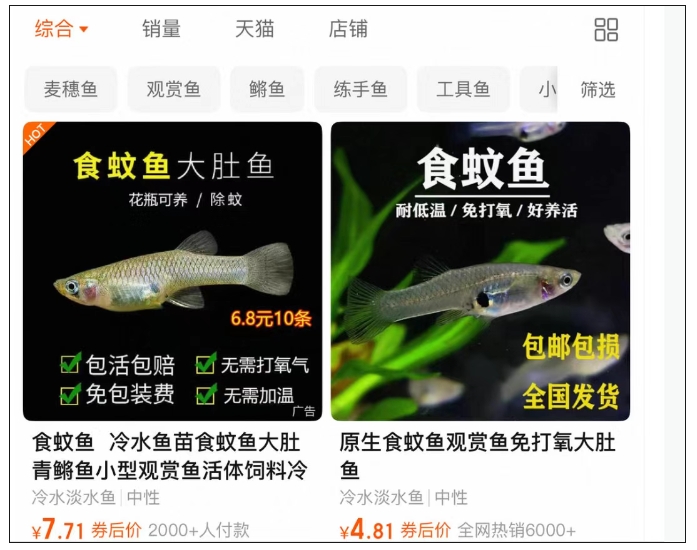 据红星新闻消息,多家网购平台有食蚊鱼售卖,网友晒的图显示,食蚊鱼体型较小,有网友评论原本聚集在水面的蚊子幼虫很快就没了。